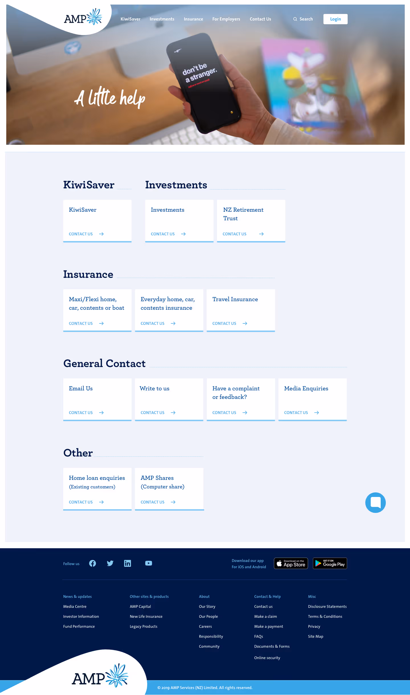 AMP had just done a rebrand in their print department and desired to carry it across to the web. Their new identity orbited around the ethos of 'A little help'.